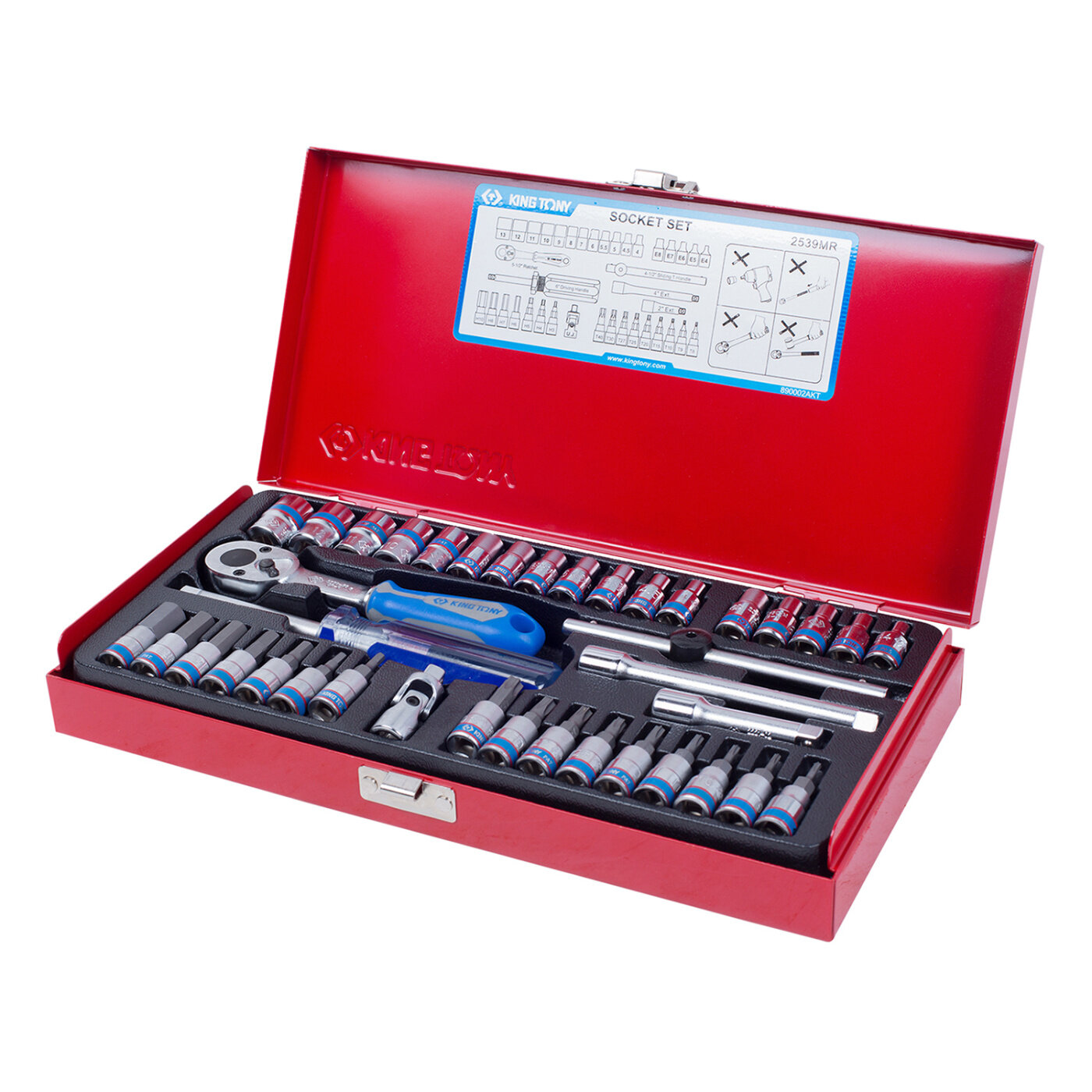 2539MR KING TONY Набор торцевых головок с принадлежностями 1/4", шестигранные, 4-13 мм, 39 предметов