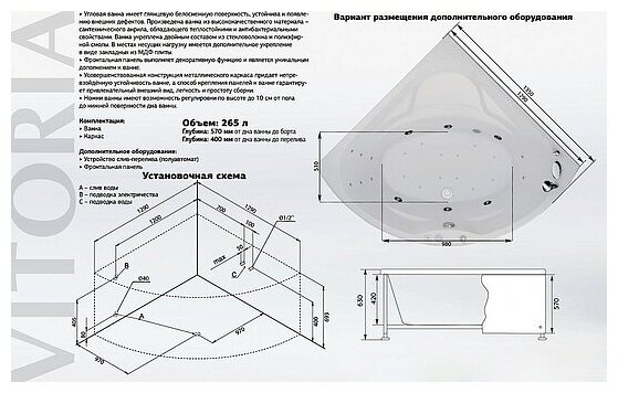 Акриловая ванна Aquanet Vitoria 130x130 информация: