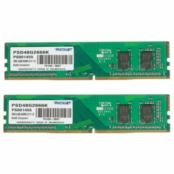 Память оперативная DDR4 Patriot Memory 2x4Gb 2666MHz (PSD48G2666K) информация: