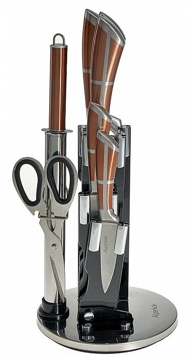 10 цен на AK-2090 Набор ножей на акриловой подставке, 8 пр. (нерж.сталь) (6)