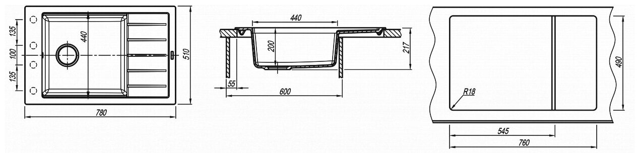 Мойка для кухни из искусственного камня Ulgran U-406-308, черный
