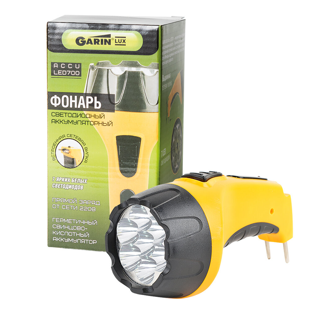 Garin фонарь универсальный Accu LED700 (акк. 4V 800mAh) 7св/д, желтый/пластик