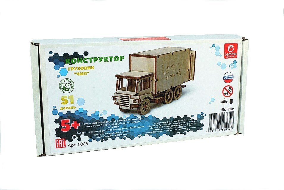 Деревянный конструктор Lemmo Грузовик "ЧИП", 59 деталей, LM-0065