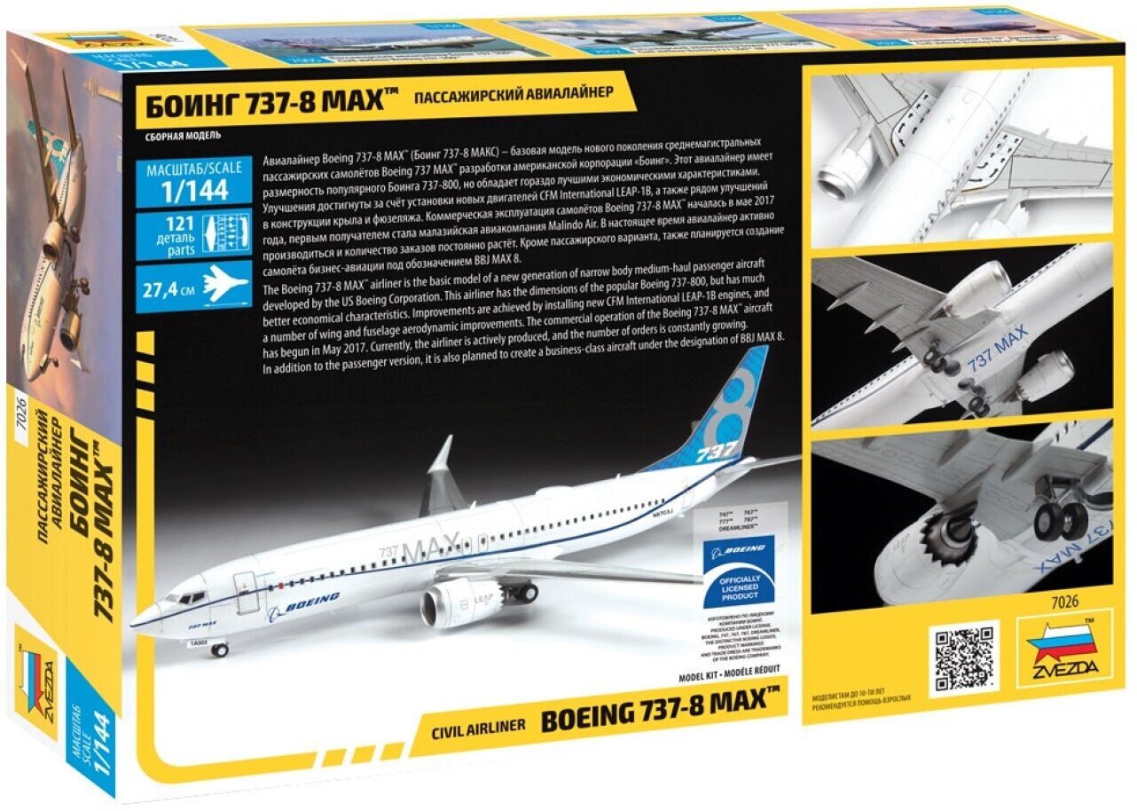 ZVEZDA 7026 Модель сборная Пассажирский авиалайнер Боинг 737-8 MAX 7026 1/144