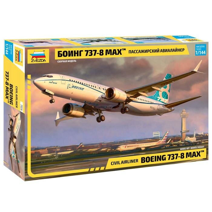 Сборная модель ZVEZDA Пассажирский авиалайнер Боинг 737-8 Max (7026) 1:144