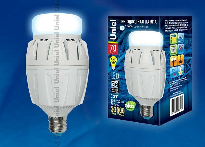 Типы/Лампочки/Светодиодные Uniel Лампа LED сверхмощная Uniel E27 70W Uniel 6000K LED-M88-70W/DW/E27/FR 08984