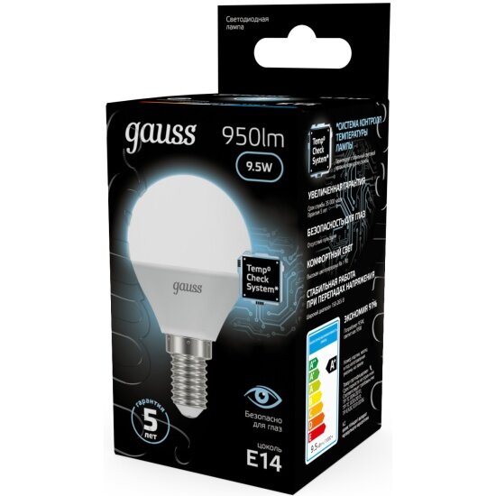 Светодиодная лампа Gauss LED Шар E14 9.5W 950lm 4100K информация:
