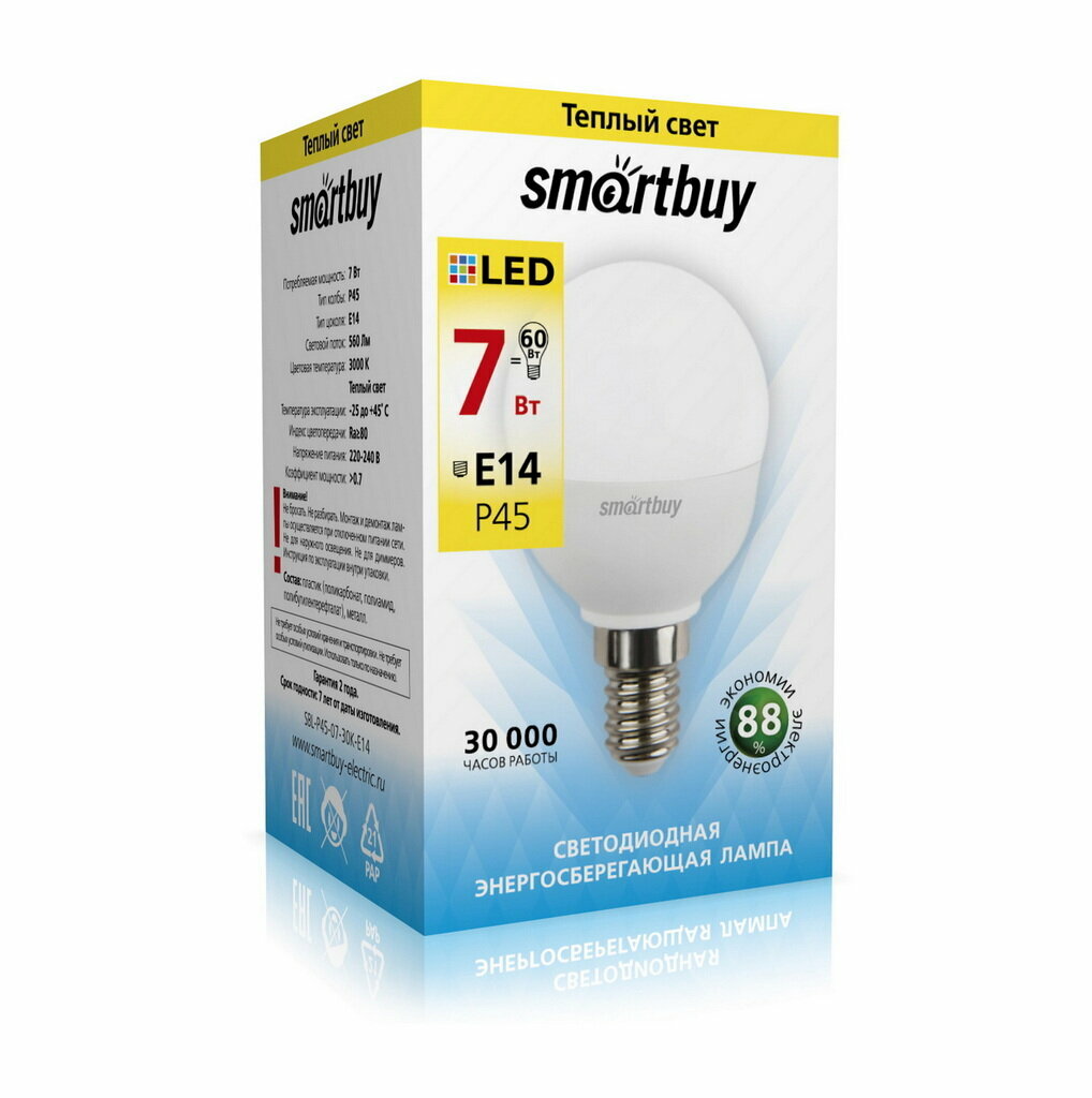 Лампочка SMARTBUY SBL-P45-07-30K-E14 E14, 7 Вт, белый