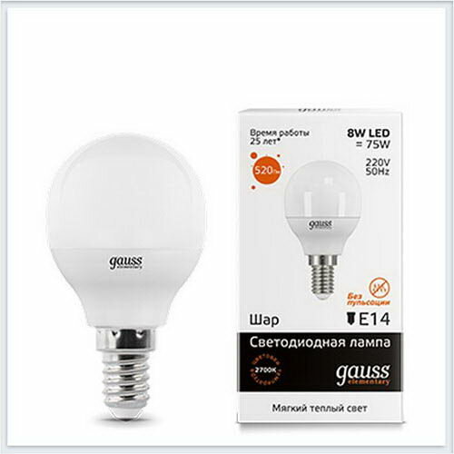 Отзывы на Gauss Лампа светодиодная шар 8W E14 3000K Gauss Elementary 53118