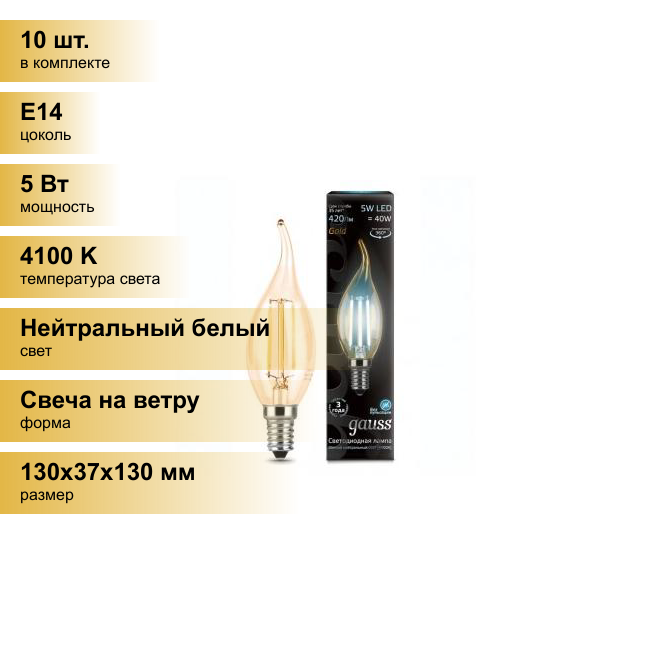 10 цен на Светодиодная лампа Gauss Black Filament LED Candle Tailed Golden E14 5W 4100K 104801805