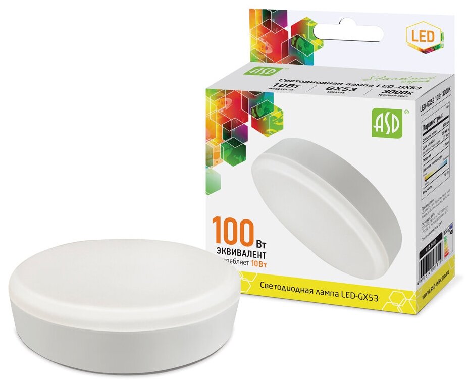 10 цен на Лампа ASD сд LED-GX53-std 12Вт 230В 3000К 1080Лм 4690612014418