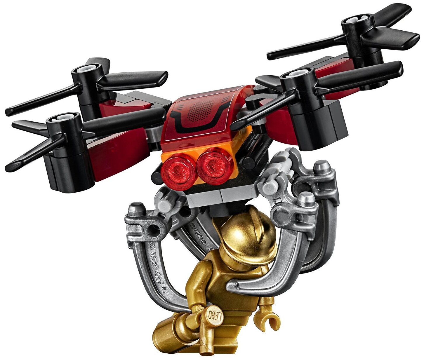 | Дополнительная информация | размеры вертолета воздушной полиции: более 9 см в высоту, 22 см в длину и 11 см в ширину, размеры дрона мошенников: более 3 см в высоту, 9 см в длину и 9 см в ширину, размеры фигурки золотой статуи на пьедестале: более 9 см в высоту, 3 см в длину и 3 см в ширину." |