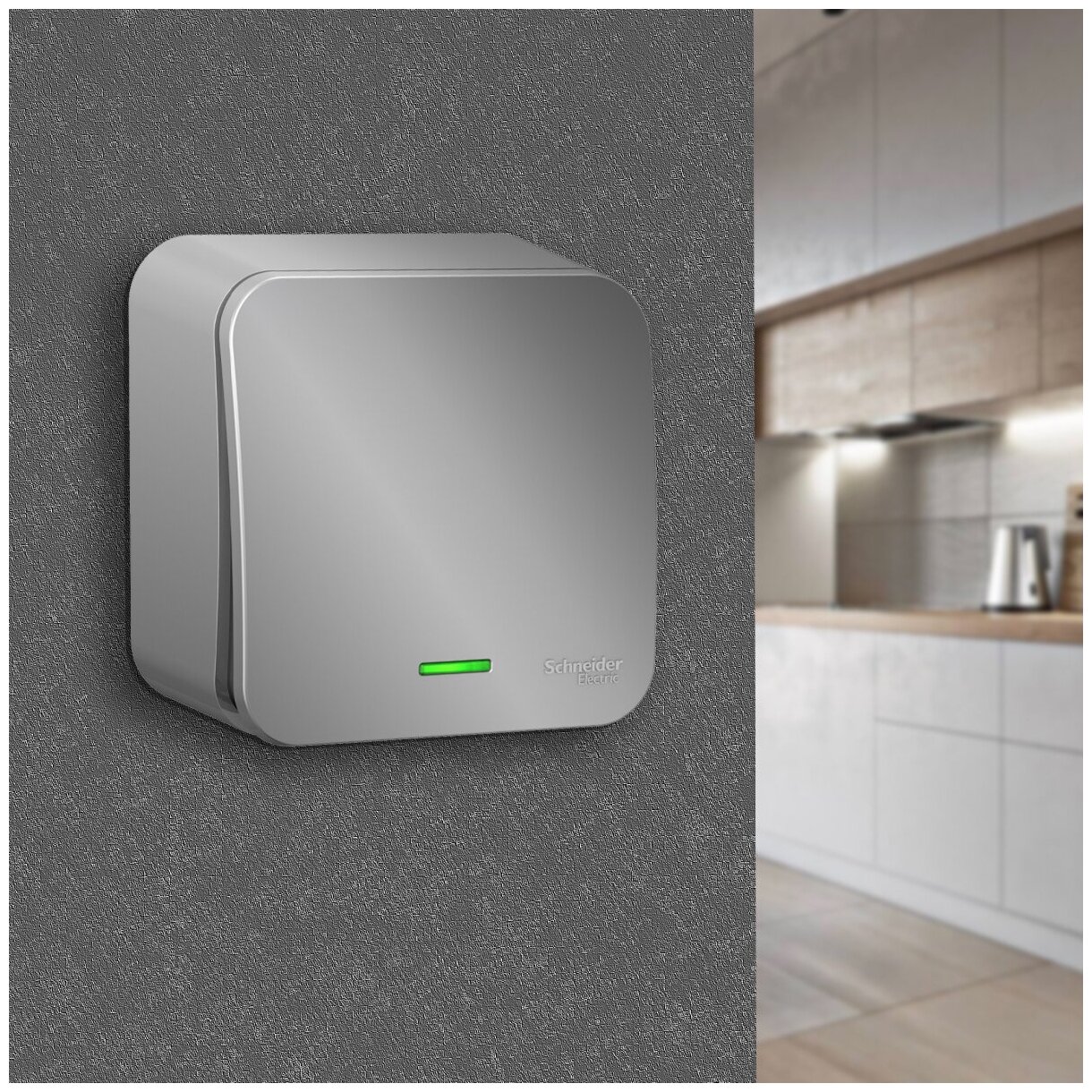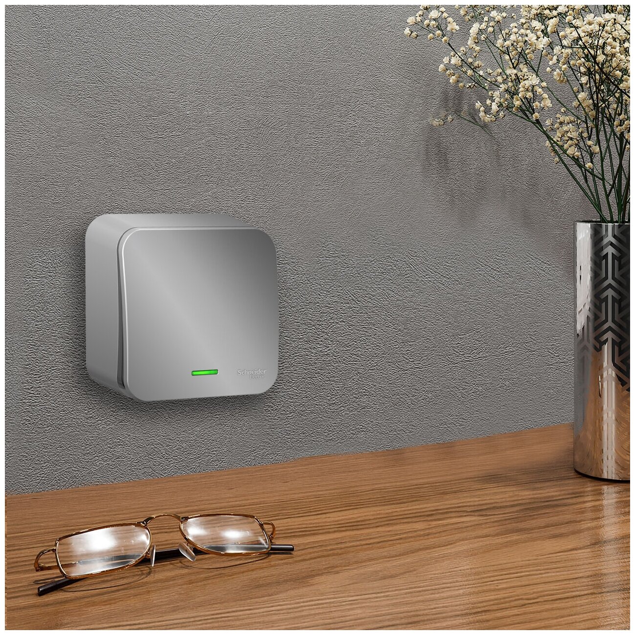 Выключатель 1-клавишный Systeme (Schneider) Electric Blanca, накладной, с подсветкой, алюминий 315 ₽