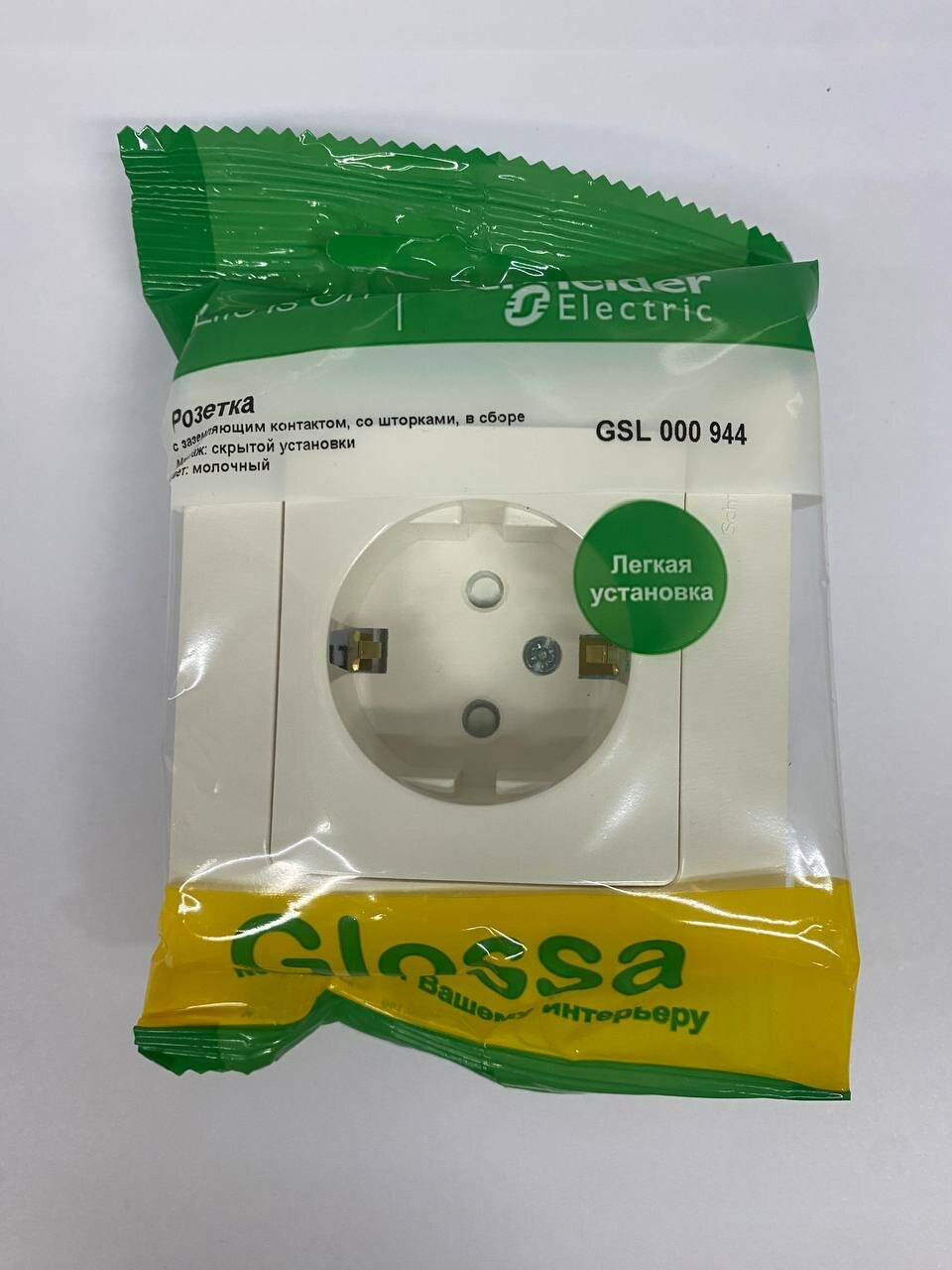 Розетка Systeme Electric (schneider Electric) SCHNEIDER ELECTRIC GLOSSA с заземлением со шторками, 16А, 250В, в сборе, молочный