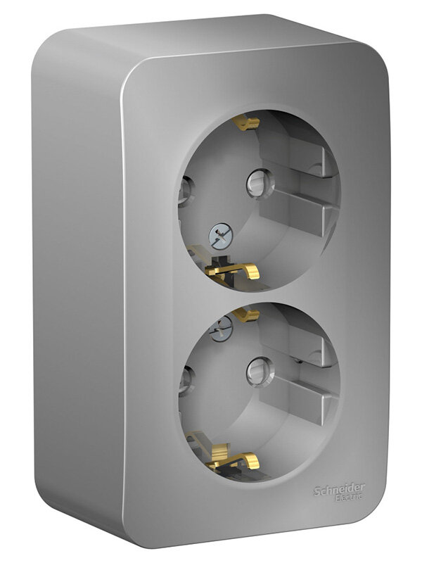 Розетка Systeme Electric Blanca двойная BLNRA011213 открытая установка алюминий с заземлением IP20 со шторками