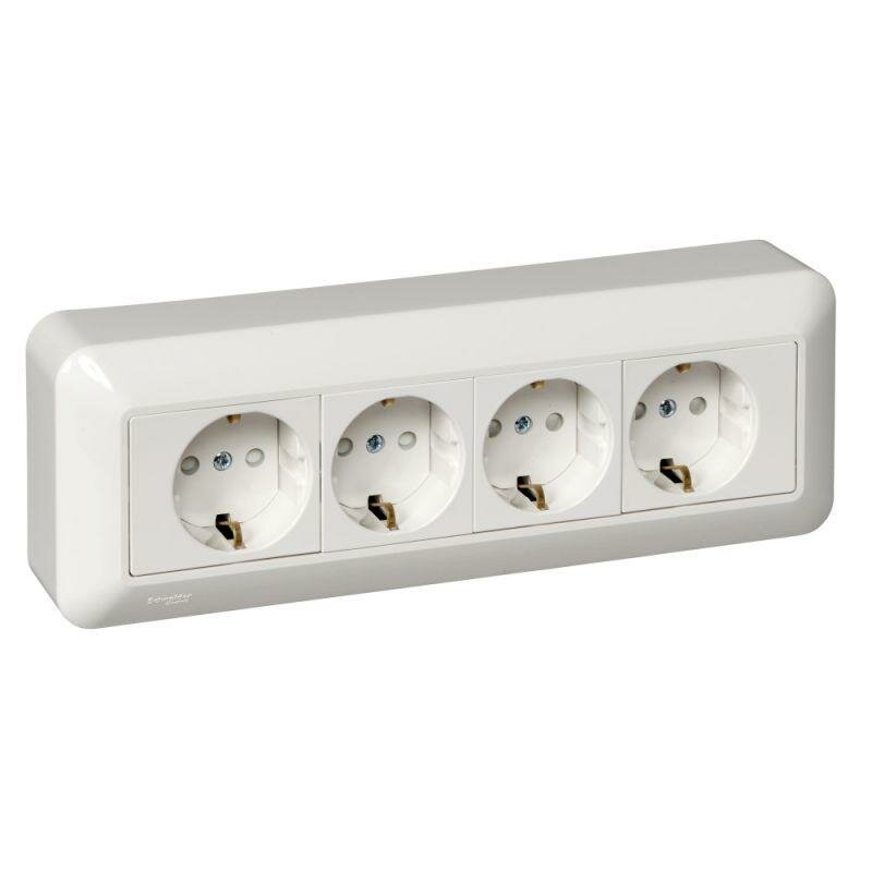 Розетка четырехместная прима, открытый монтаж, с заземлением, со шторками, белый | код. RA16-411M-BI | Schneider Electric ( 1шт. ) 1 277 ₽