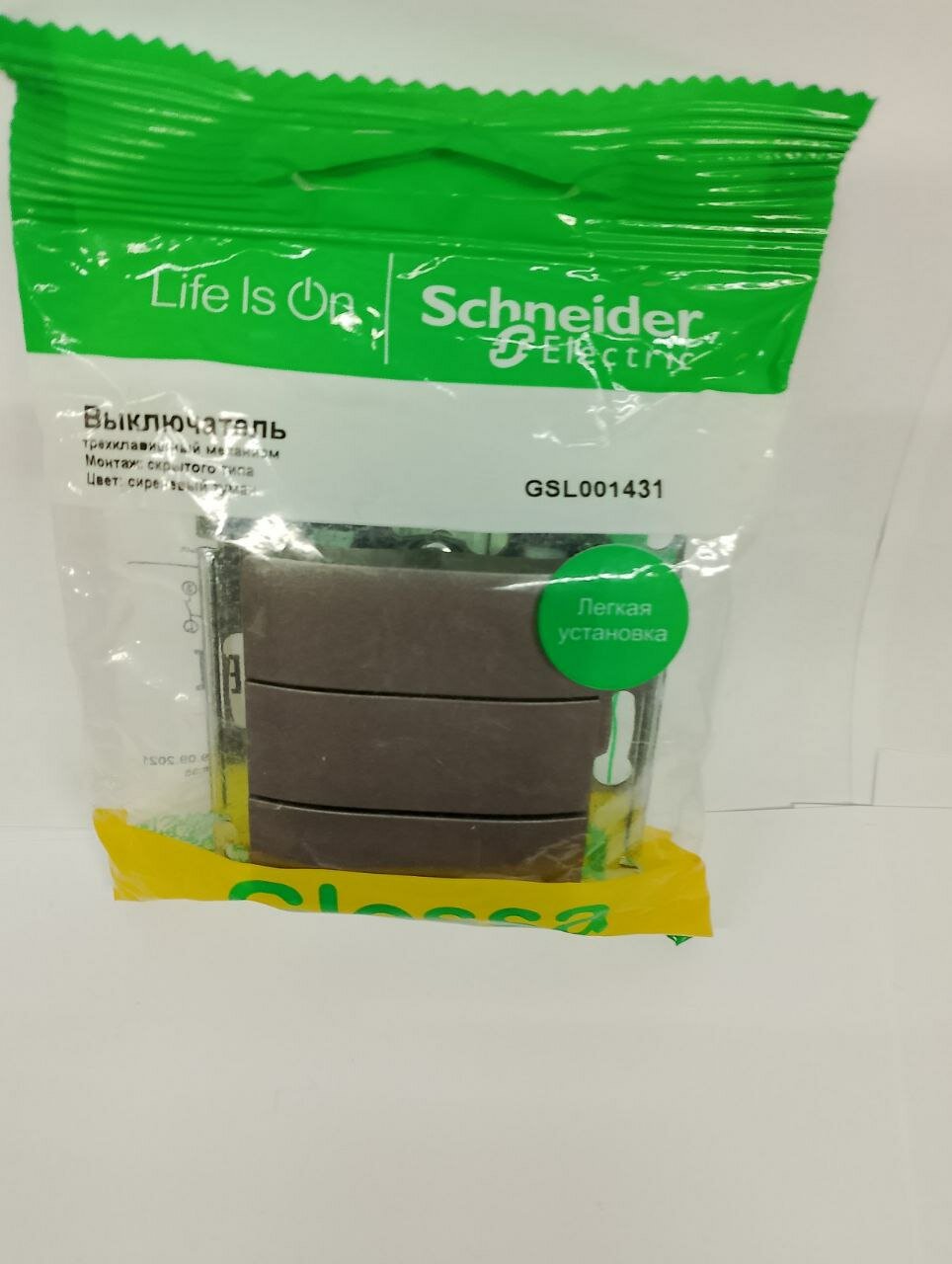 Выключатель Schneider Electric Glossa трёхклавишный. Сиреневый туман