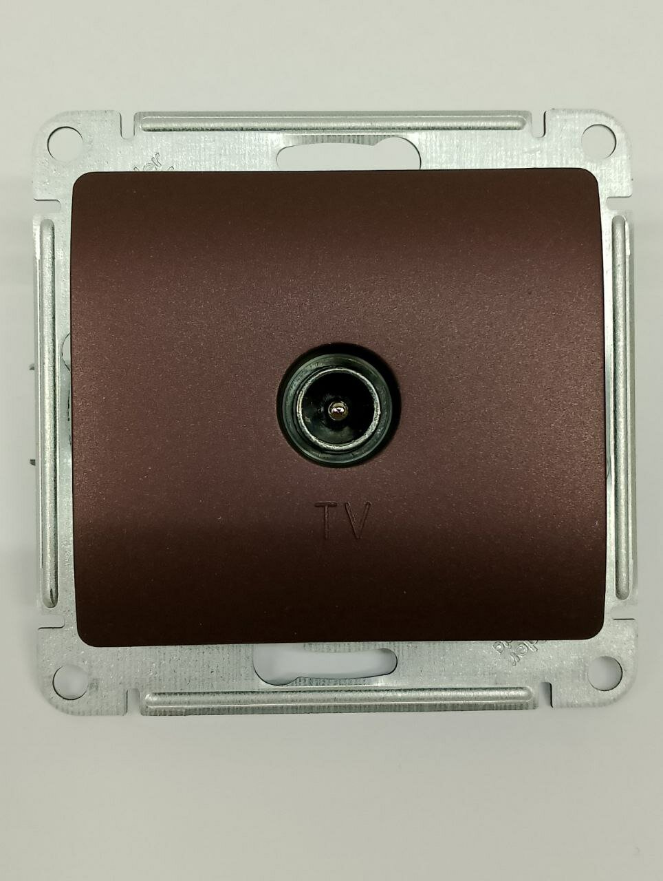 Розетка SE Glossa GSL000892, проходная, подключение ТВ, скрытый монтаж, коричневая