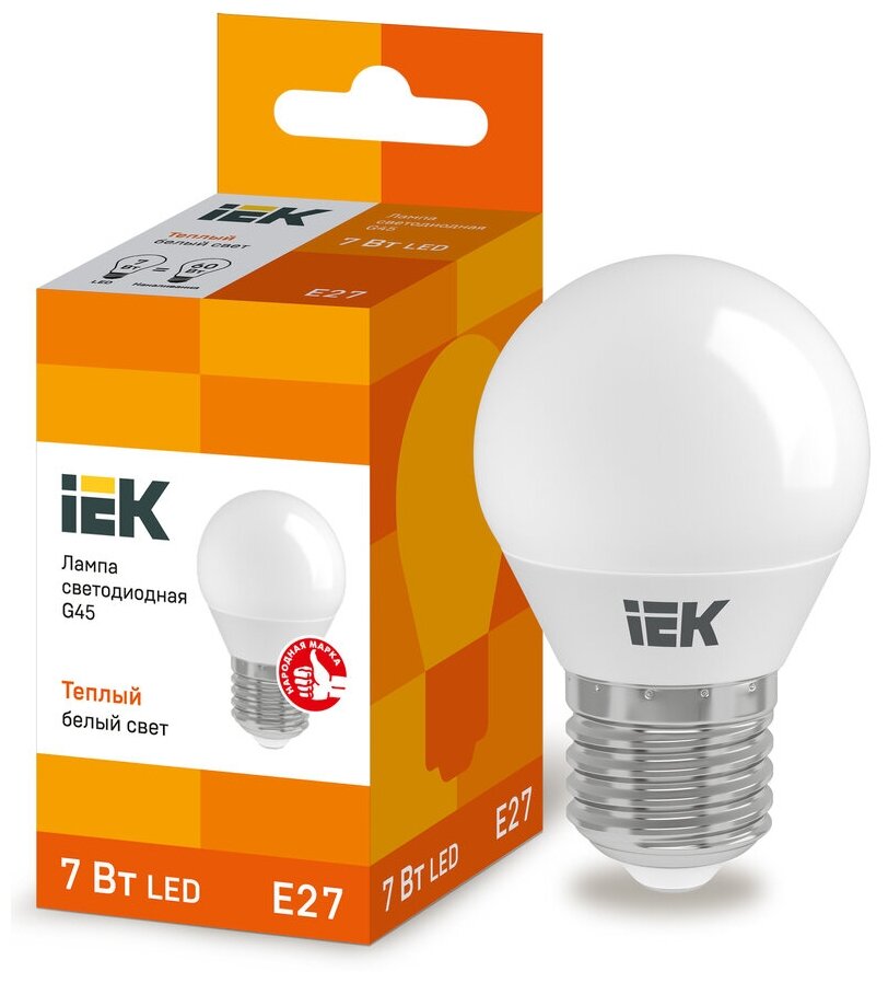 IEK Лампа светодиодная ECO G45 шар 7Вт 230В 3000К E27 информация: