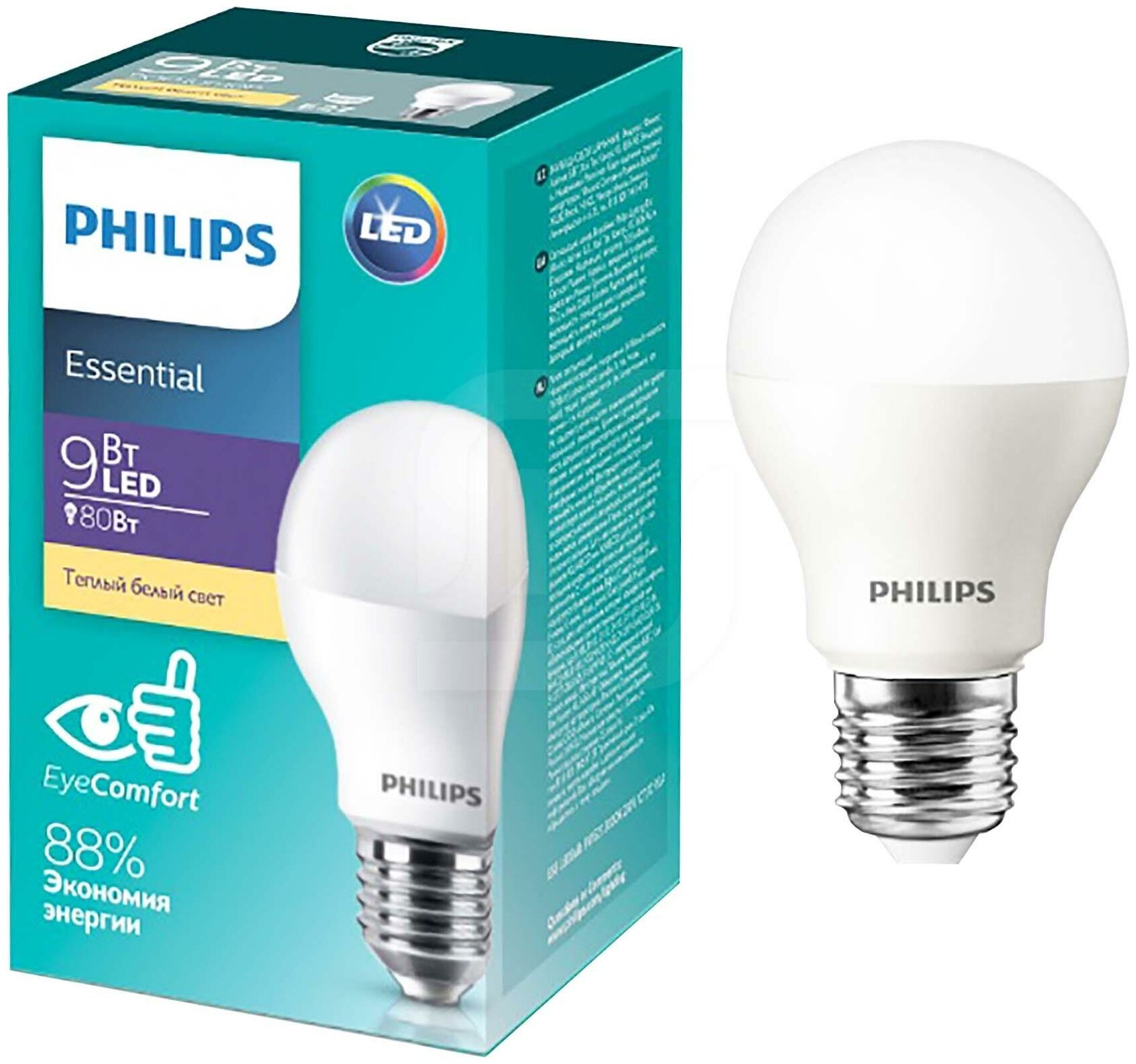 Умная лампа Philips Светодиодная E27 9W = 80W теплый свет Essential информация: