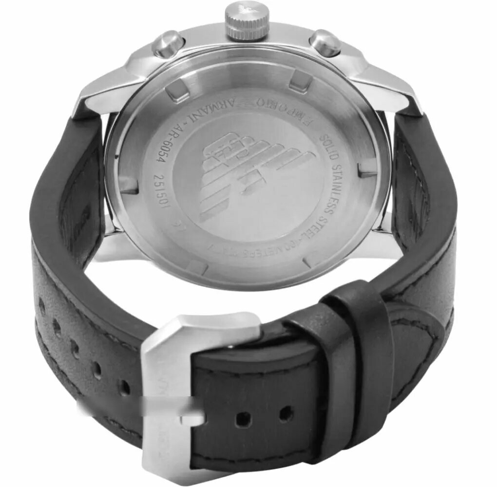 Часы мужские наручные Emporio Armani AR6054 кварцевые на кожаном черного цвета с минеральным стеклом водонепроницаемостью WR100 (10 атм)