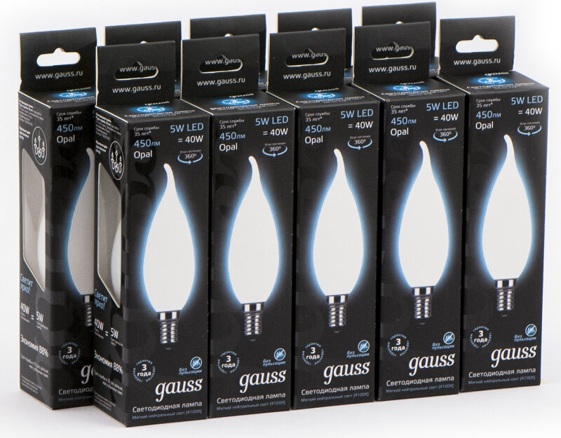 Отзывы на Светодиодная лампа GAUSS LED Filament Candle Tailed OPAL E14 5W 4100К (упаковка 10 шт)