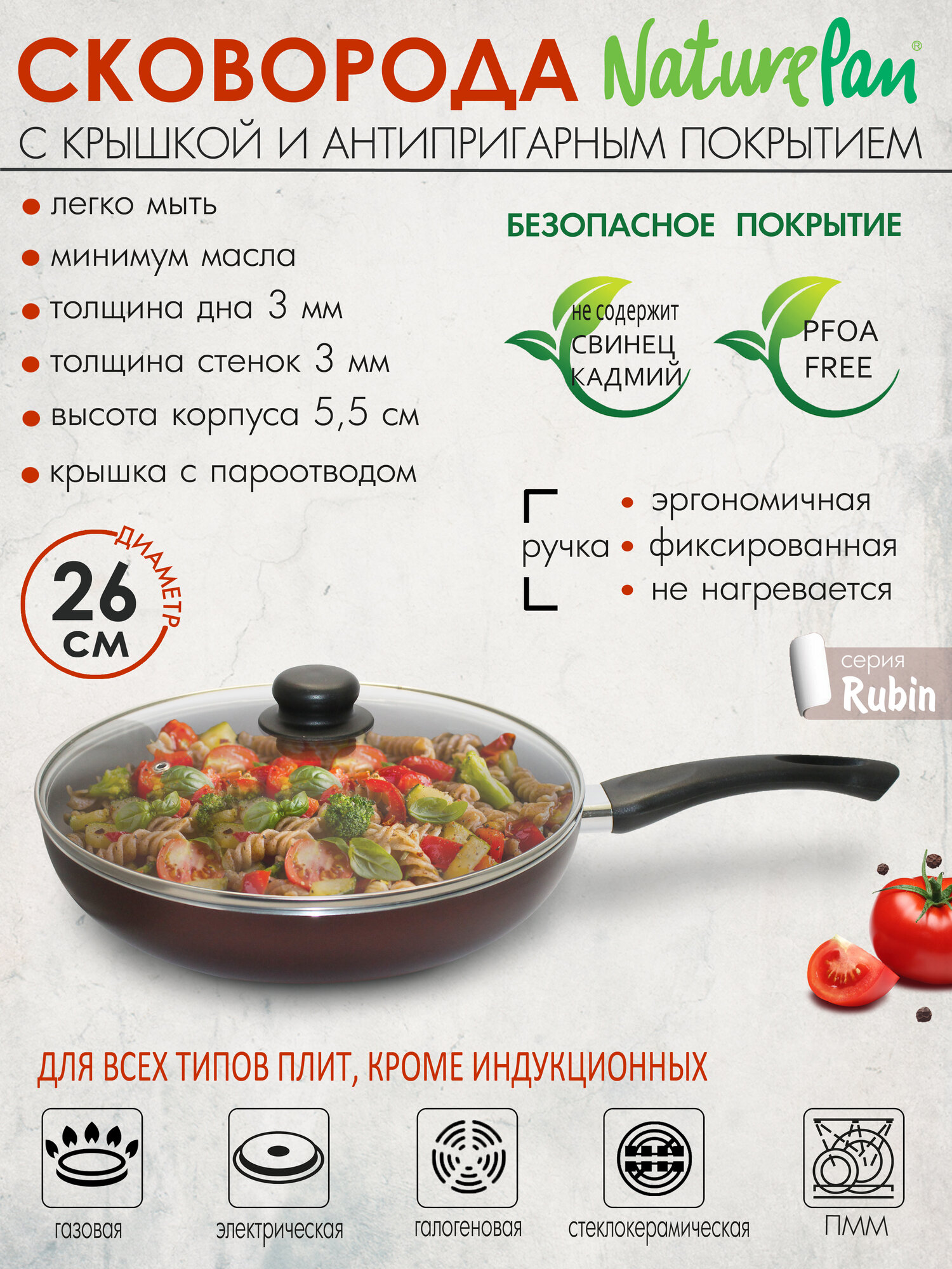 Сковорода с крышкой NaturePan Rubin 26см информация: