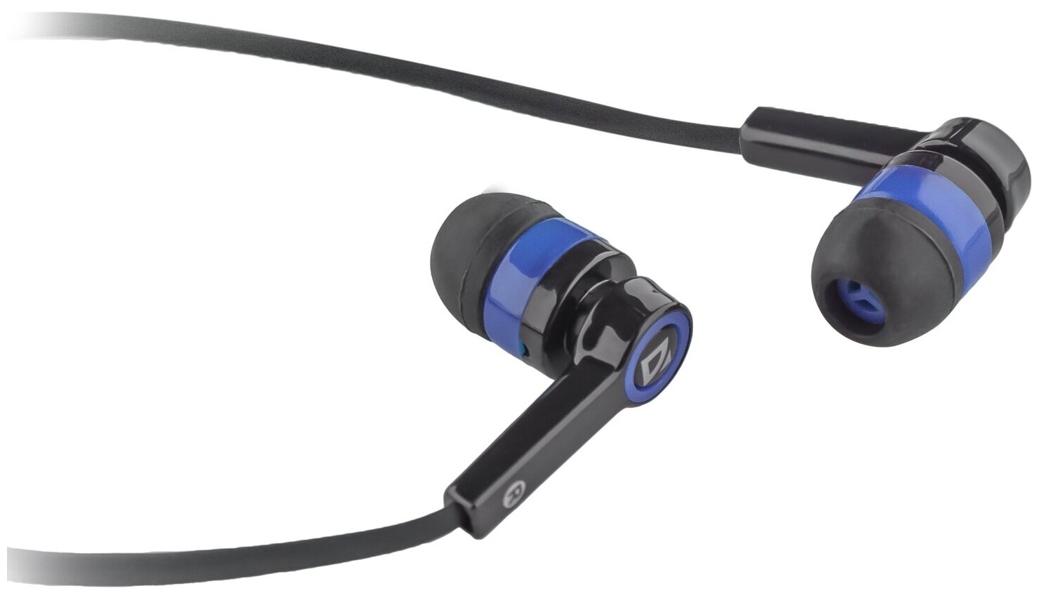 Наушники Defender Pulse-420, mini jack 3.5 mm, черный/синий