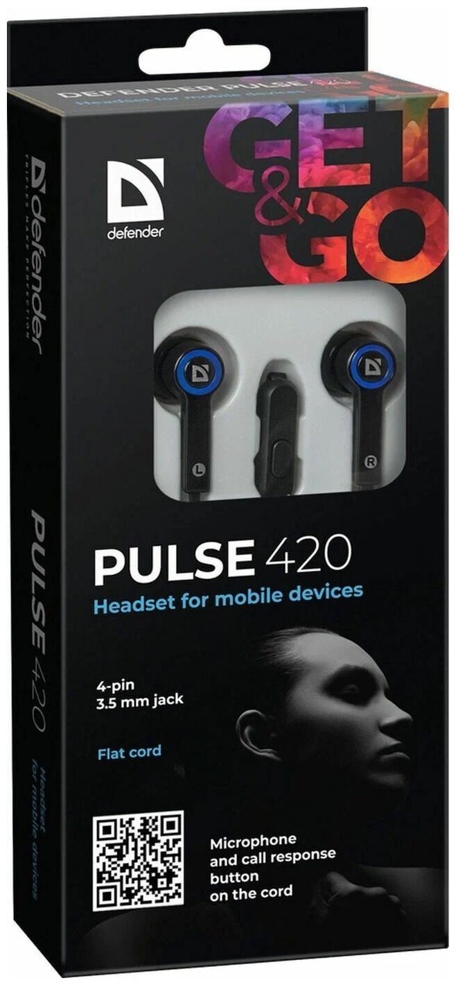 Гарнитура для смартфонов Defender Pulse 420 черный + синий, вставки