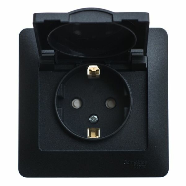 GLOSSA розетка с заземлением со шторками,с крышкой, IP20, в сборе, антрацит, SCHNEIDER ELECTRIC GSL000746 (1 шт.)