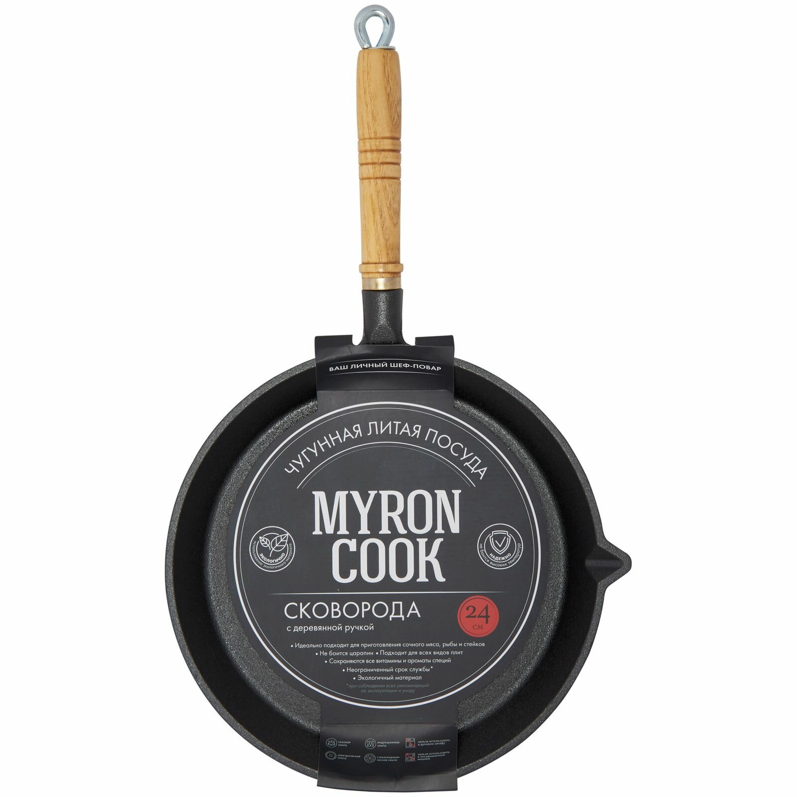 Отзывы на Сковорода чугун Myron Cook с деревянной ручкой 24см MC2246