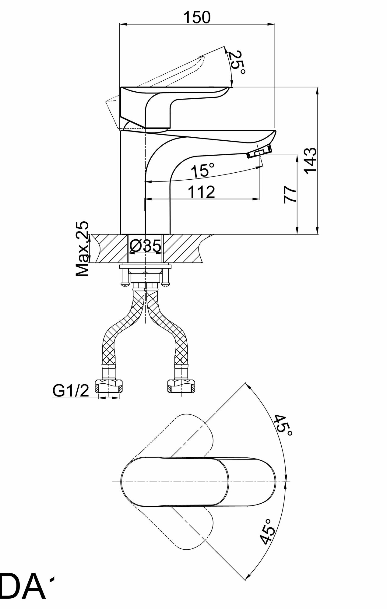 Смеситель для умывальника 35к D&K DA1032101 литой, п/гайку хром