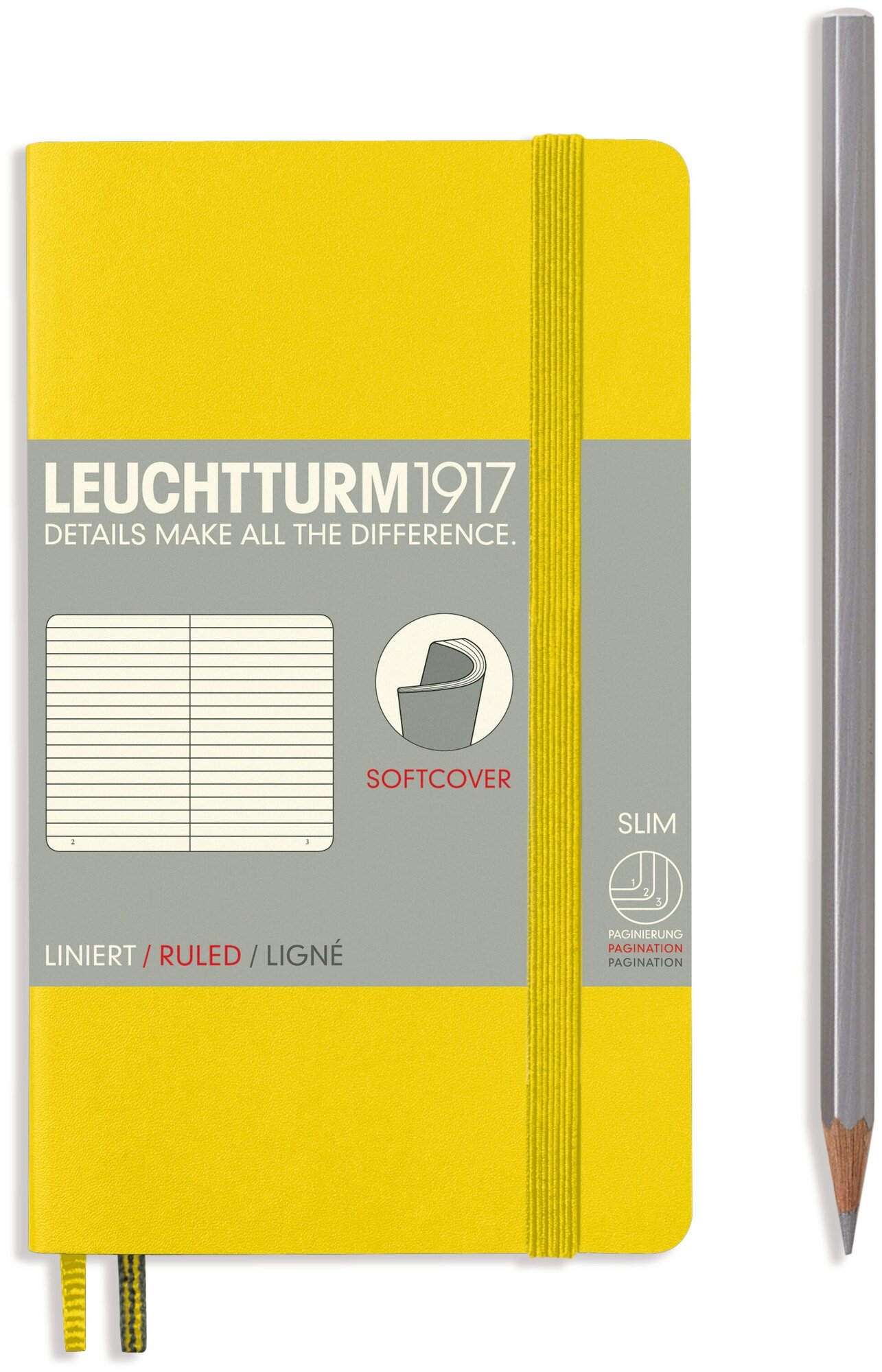 Записная книжка Leuchtturm Pocket, в линейку, лимонная, 123 страницы, мягкая обложка, А6 информация:
