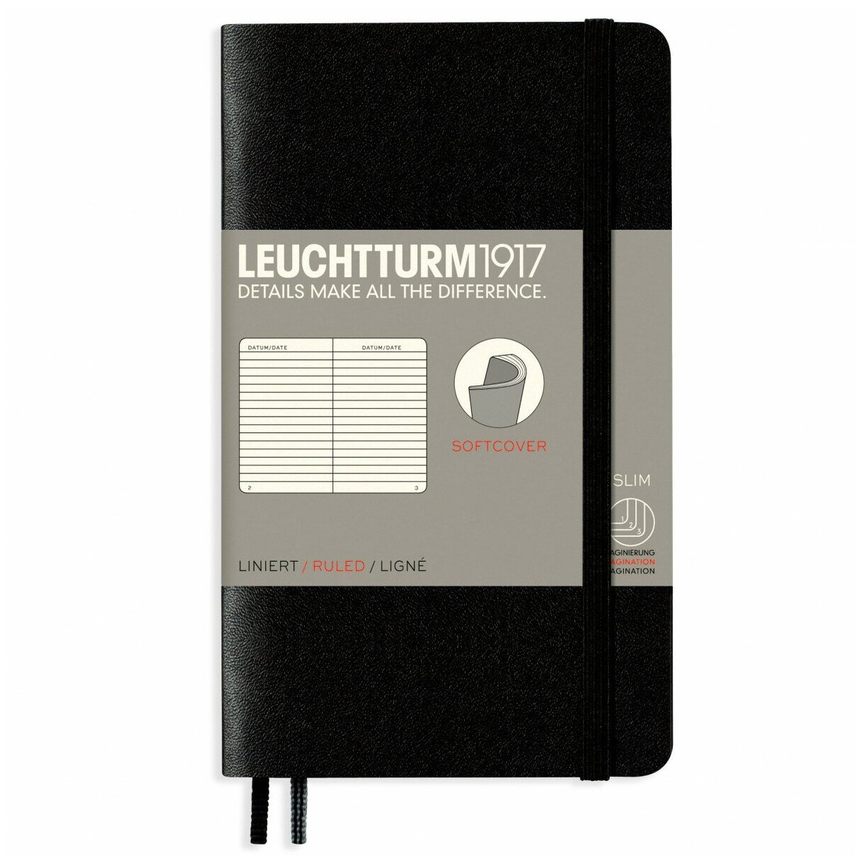 Записная книжка Leuchtturm Pocket, A6, в линейку, черная, 123 страницы, мягкая обложка информация: