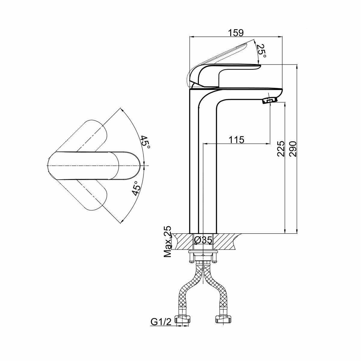 | Высота излива | 225 мм |