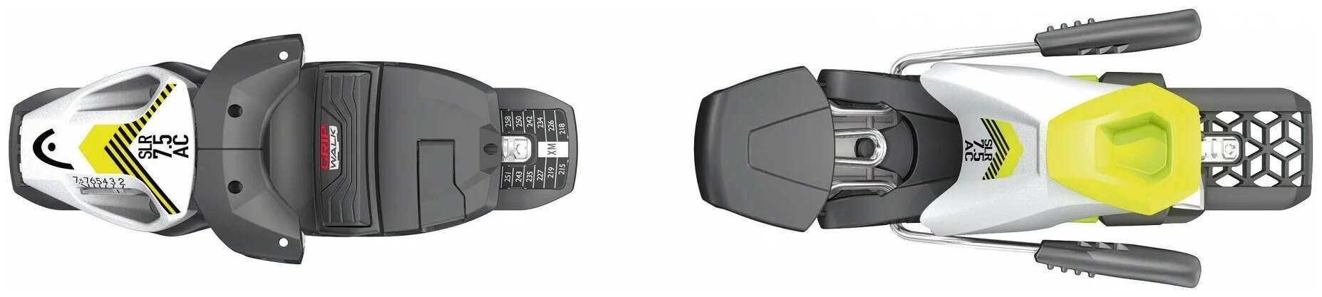 | Особенности | крепления SLR 7.5 GW AC BRAKE 78 [H]]: атяжка DIN 2-7,5 антиблокировочная система AFS, полная диагональ головки креплений, совместимы со стандартной подошвой Alpine горнолыжного ботинка, с подошвой GripWalk (GW) и GripWalk Junior (GW); ростовка: макс. 160 см - мин. 110 см |