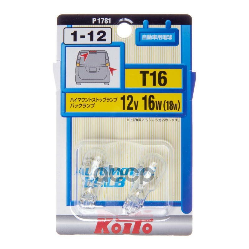 Лампа автомобильная накаливания KOITO ECE P1781 12V 16W W2.1×9.5d 2 шт.