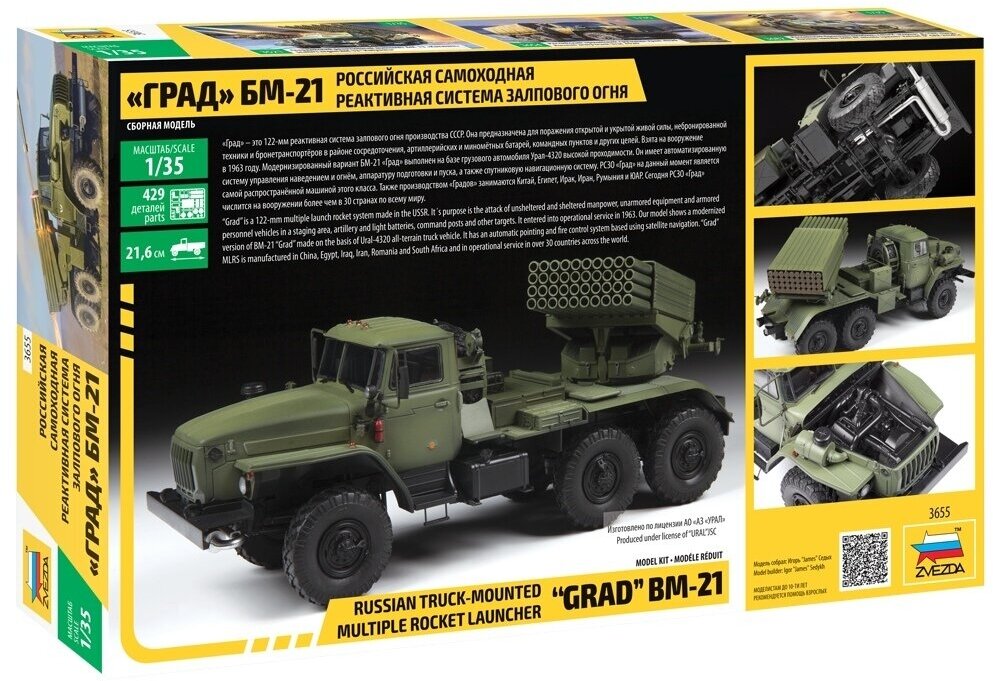 Сборная модель Zvezda 3655 Российская самоходная реактивная система залпового огня град БМ-21