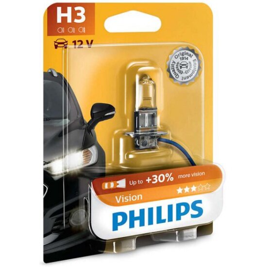 Лампа автомобильная PHILIPS Vision Premium H3 55W PK22s+30% (бл.) 12V, 1шт, 12336PRB1 информация: