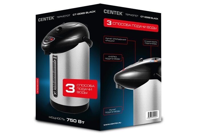 Термопот Centek CT-0089 /черный, 750Вт., 3л, 5 096 ₽