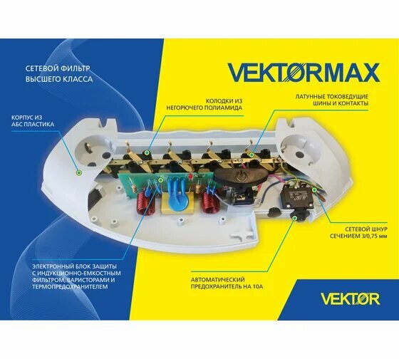 10 цен на Сетевой фильтр Vektor MAX светло-серый 1.8-2м (максимальная защита от помех)