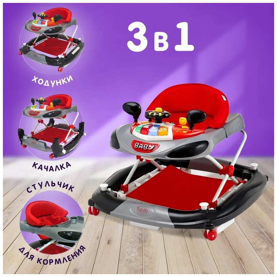 Ходунки детские Nuovita Carrozza 3 в 1: ходунки, качалка, стульчик для кормления (Rosso/Красный) 7 719 ₽