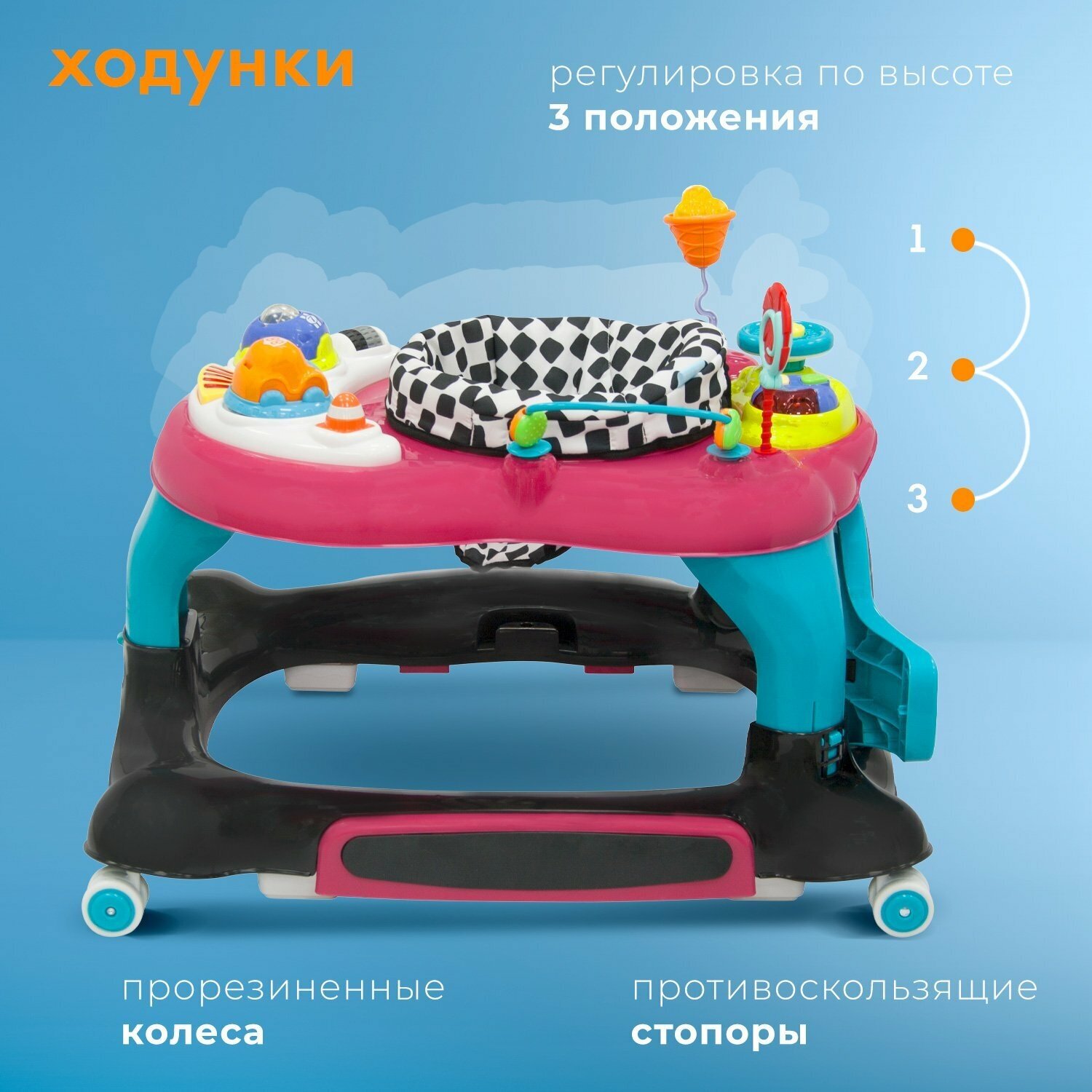 Характиристики этого товара не найдены!Отзывы на Ходунки детские Nuovita Saltare 4 в 1: ходунки, прыгунки, игровой центр, толкатель (Nero Rosa/Черно - розовый)