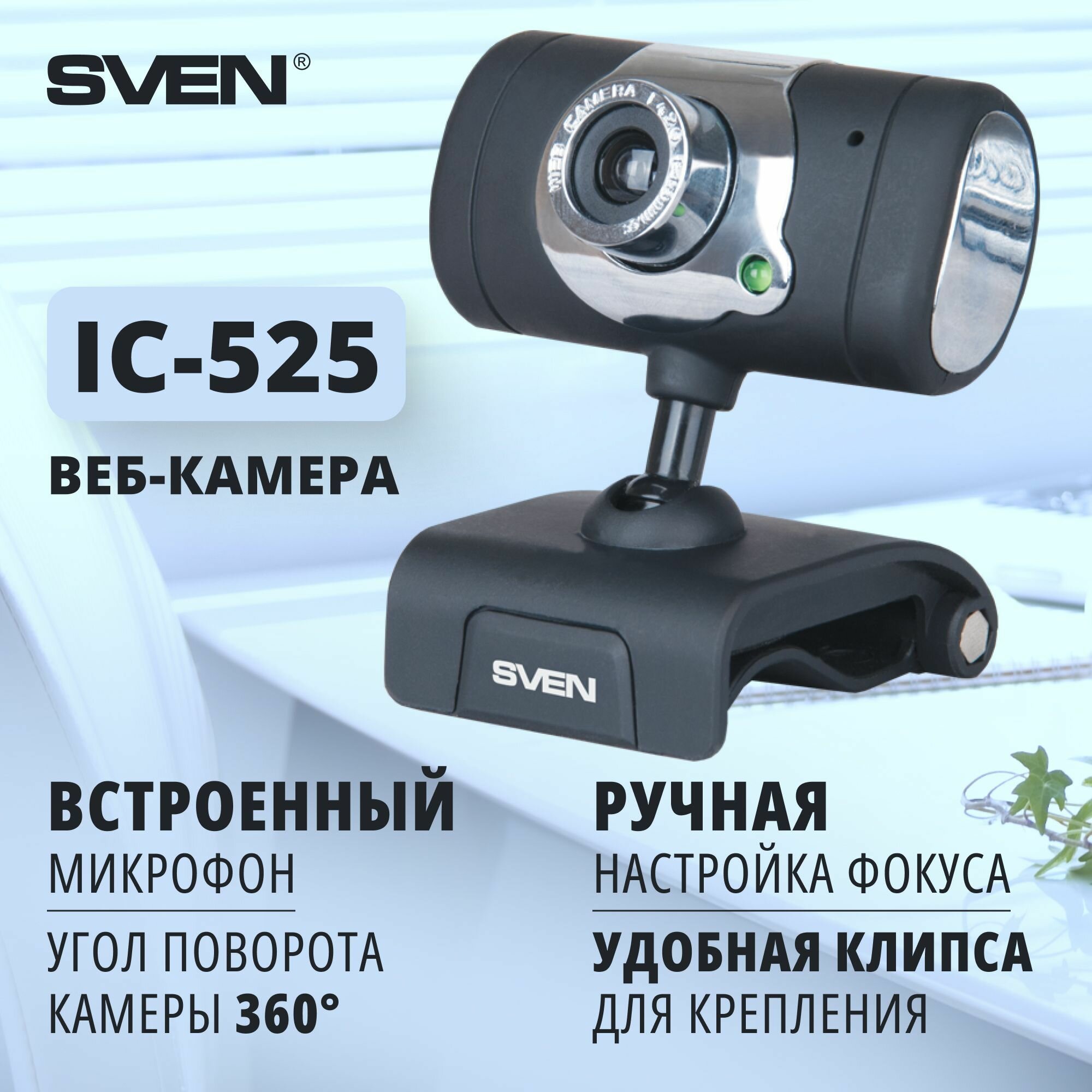Веб-камера SVEN IC-525, 1,3 Мп, микрофон, USB 2.0, регулируемое крепление, черная, SV, SV-0602IC525 1 598 ₽