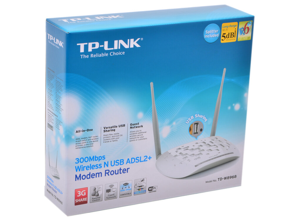 Отзывы на Маршрутизатор TP-LINK TD-W8968 Беспроводной маршрутизатор серии N со встроенным модемом ADSL2+ и портом USB, скорость до 300 Мбит/с