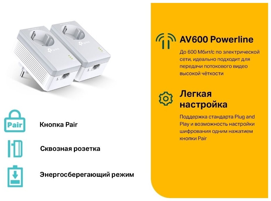 Комплект адаптеров Powerline TP-LINK TL-PA4010P KIT AV600 информация: