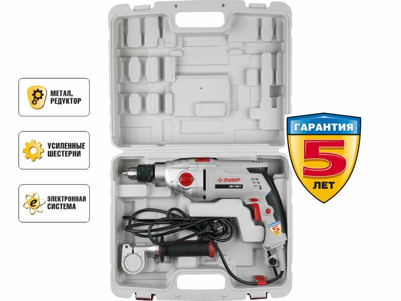 Отзывы на Дрель ударная Зубр ЗДУ-1100-2 ЭРМКМ2 1100Вт патрон:кулачковый реверс (кейс в комплекте)