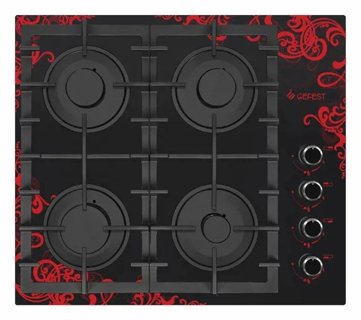 Газовая варочная панель Gefest ПВГ 2232-01 Р, черная, стекло, чугун, газ-контроль