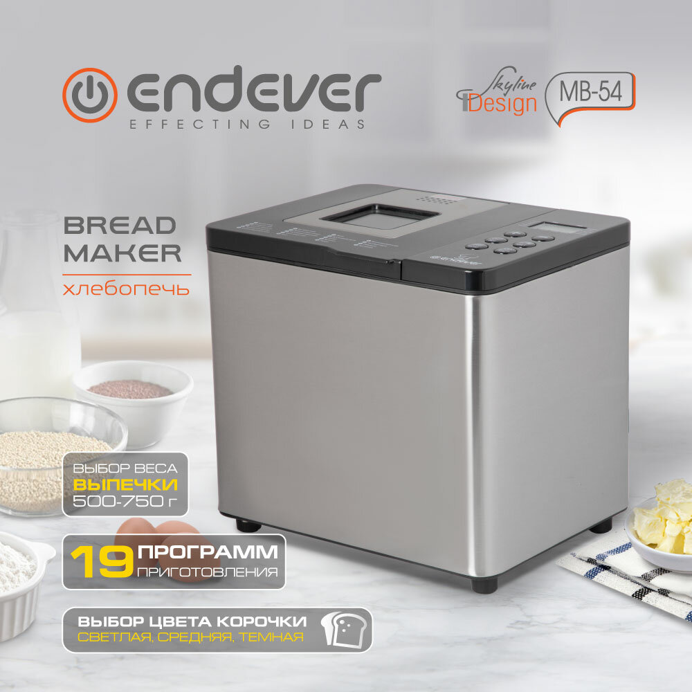 Хлебопечь ENDEVER Skyline MB-54 /750Вт, вес выпечки 0,5-0,75кг, таймер, 19 программ