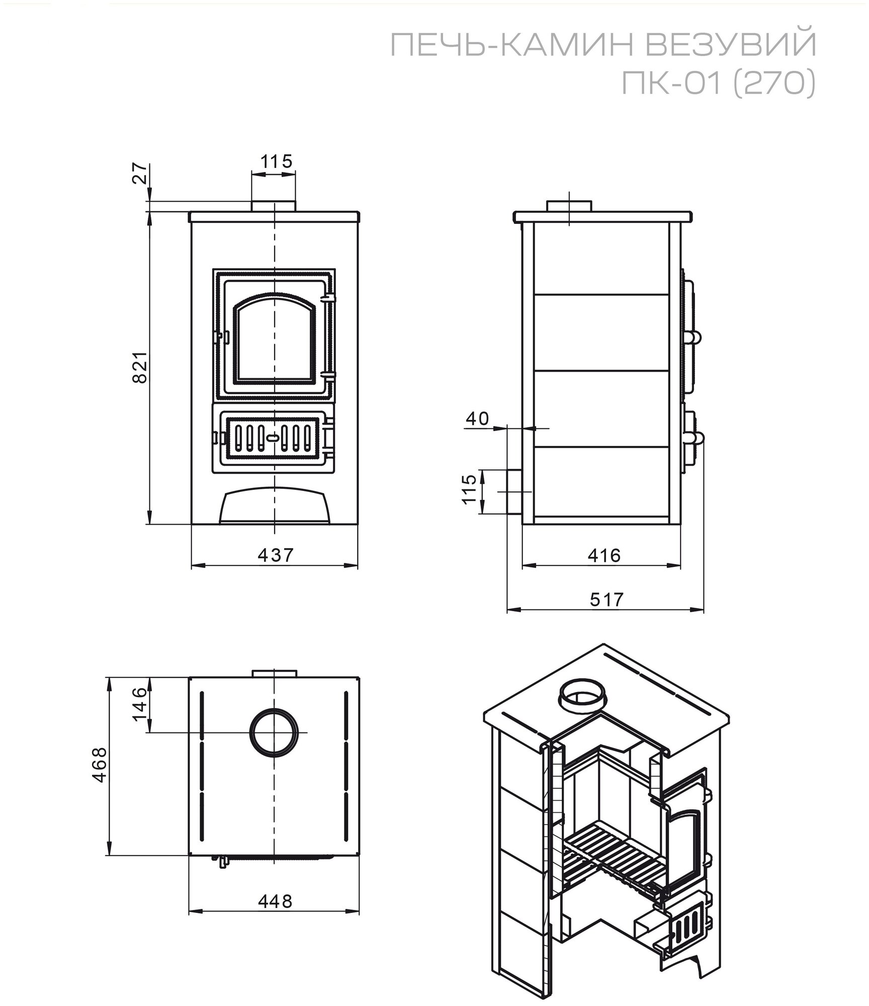 Отзывы на Печь-Камин везувий ПК-01 (270) с плитой и т/о беж. 9 кВт (150 м3) Ø 115 мм